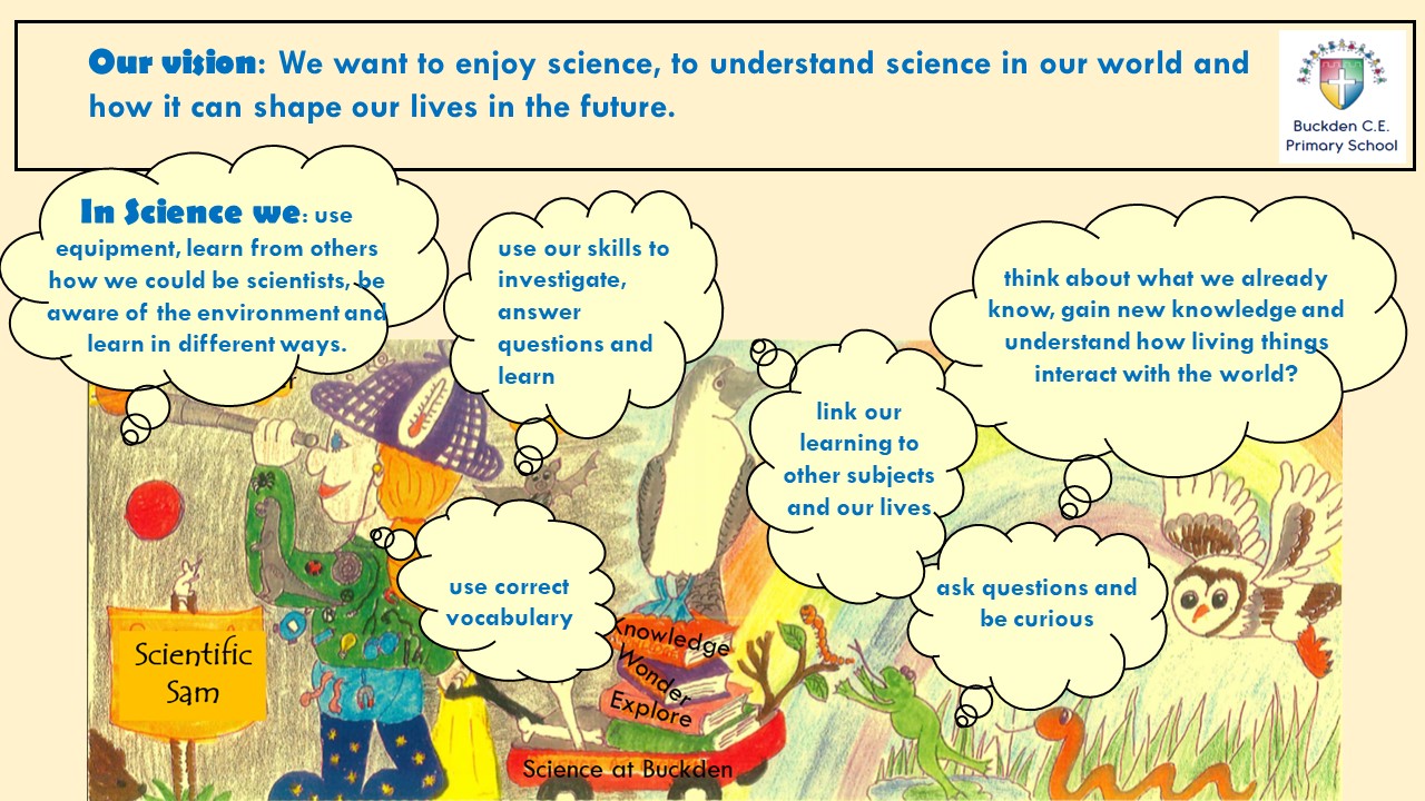 This is Scientific Sam, this image represents how science is viewed at Buckden C.E .Primary Academy.